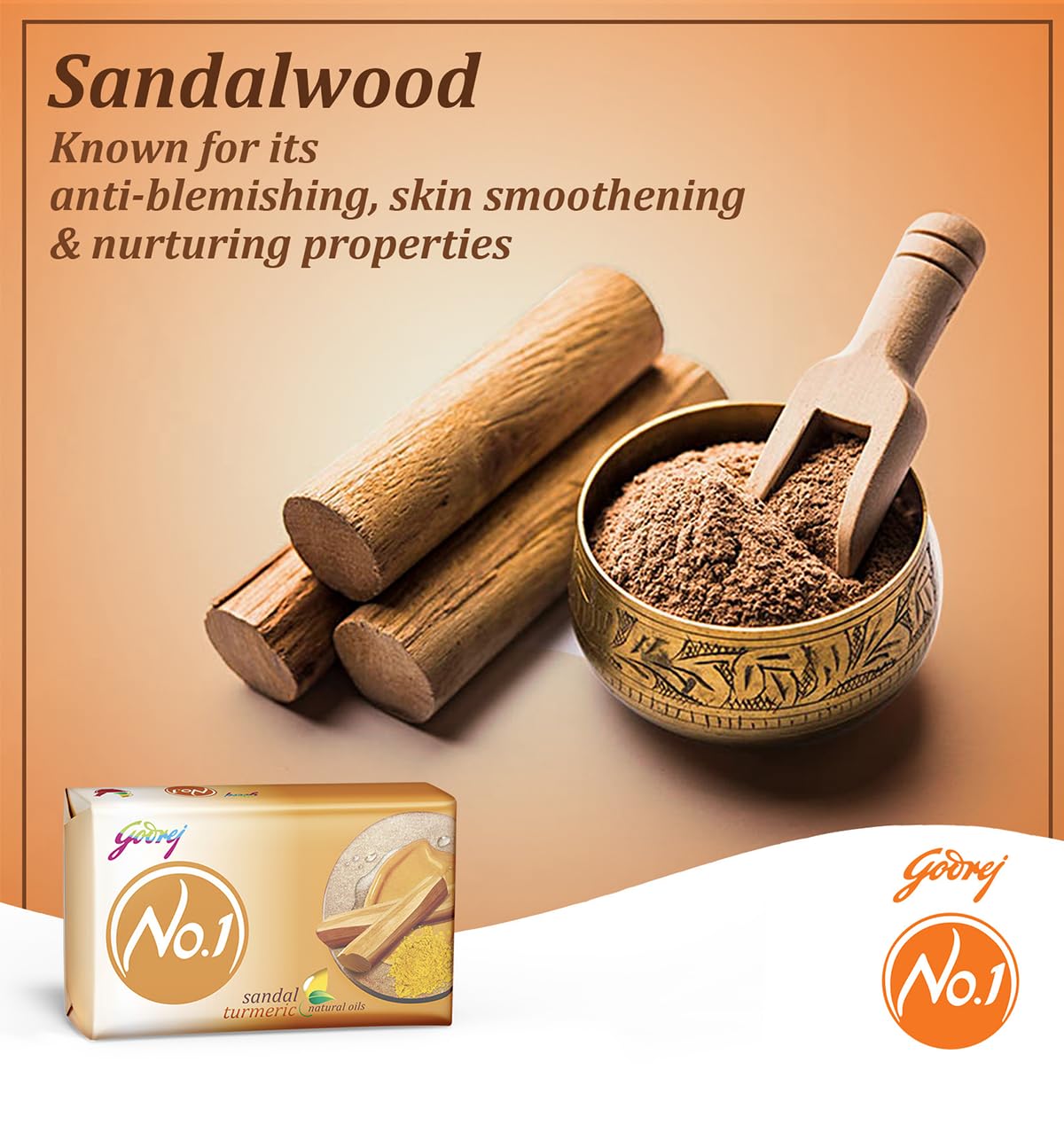Indulge in the luxurious experience of Godrej No. 1 Sandal and Turmeric Soap, the third-largest soap brand by volume in India. Enriched with the natural goodness of sandalwood and turmeric, this high-quality Grade 1 soap promises to cleanse and nourish your skin, leaving it feeling clean, refreshed, and naturally beautiful. The rich lather helps to remove dirt and impurities, while the soothing properties of sandalwood relax your mind and body, and the antiseptic qualities of turmeric cleanse and purify your skin, revealing a radiant, healthy glow. Suitable for all skin types, this long-lasting, fragrant soap offers a gentle yet effective cleansing experience, making it the perfect choice for your daily bathing ritual.